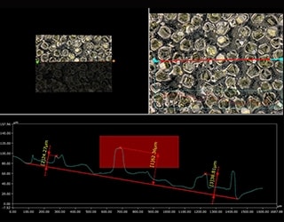 使用4K數位顯微鏡「VHX系列」的「3D合成功能」,可進行輪廓量測。可掌握PCD工具的表面形狀,除了缺損與磨損都能以微米等級量測。