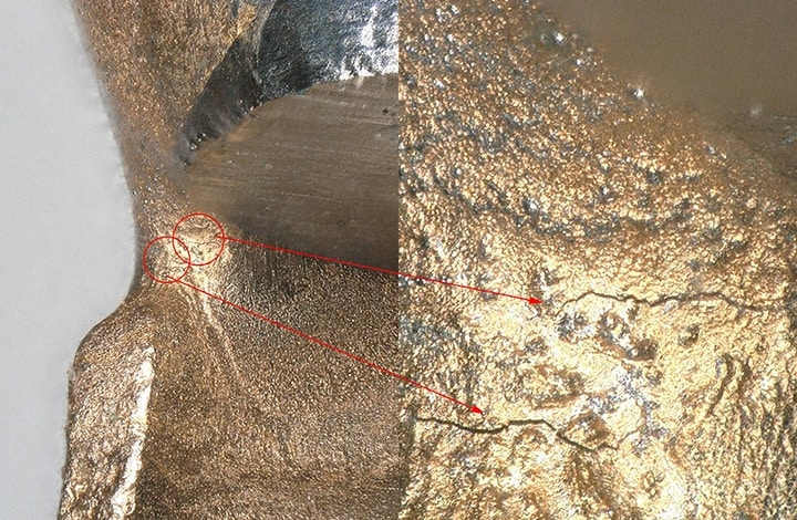 刀尖磨損或缺陷除影響加工精度和速度外,刀尖高溫也會導致被切削材變形、破損,甚至加工機故障。觀察刀尖並掌握其狀態和切削製程能力直接相關。