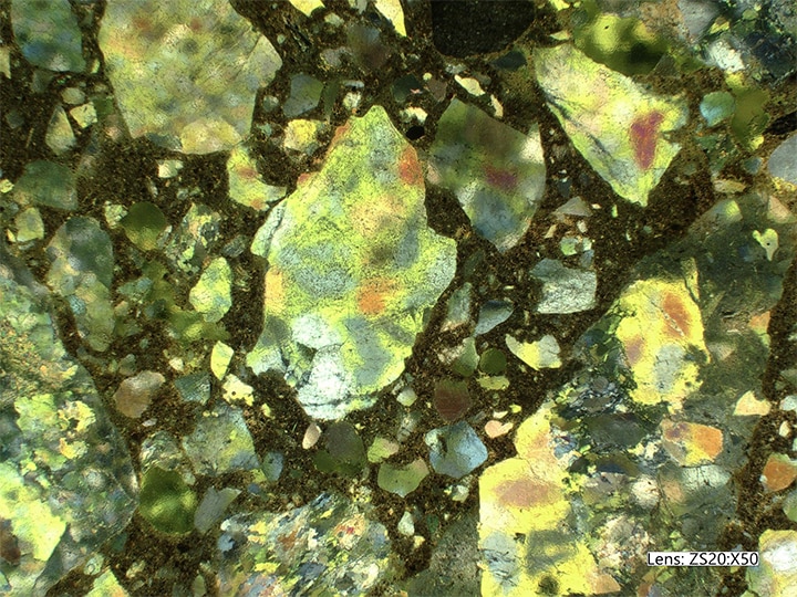 在石油產業的廠房建設、建築產業等的素材研究及大學的研究機關等許多領域中,常需要放大觀察礦石和岩石的內含礦物。由於礦物通常很難憑目視或放大鏡的巨觀狀態來鑑定內含物,因此會使用偏光顯微鏡進行觀察。