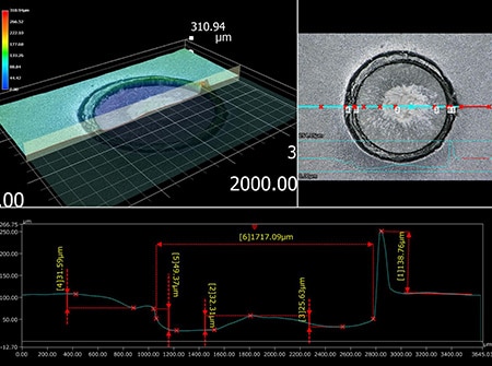 4K數位顯微鏡「VHX系列」不只可用高精細影像觀察,還可量測次微米級的高精度3D形狀與不良部位的輪廓。