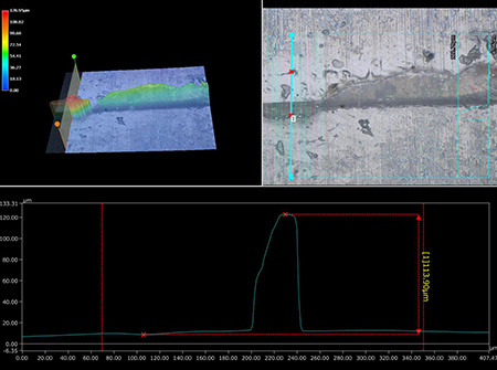 但以往的光學顯微鏡,對於顏色對比低、立體結構、複雜形狀、表面有光澤或透明性等成型品,很難正確的進行外觀檢查。也無對不良部位的尺寸、材料粒子、添加材分散狀態進行定量評估。
