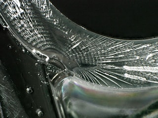 以往顯微鏡觀察樹脂(塑膠)材料的粒子時,因表面的凹凸,僅可局部對焦。再加上材料的光澤帶來的環型反射光,使氣泡觀察更加困難。