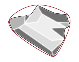 計算包絡度時會用到「凸體周長」,可將其比喻成橡皮筋被套在粒子的輪廓周圍時,處於伸長狀態的總長。這個數值也稱為粒子周長(端面接觸)。