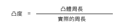 有了凸體周長即可透過下列算式計算出「凸度」及「實度」。