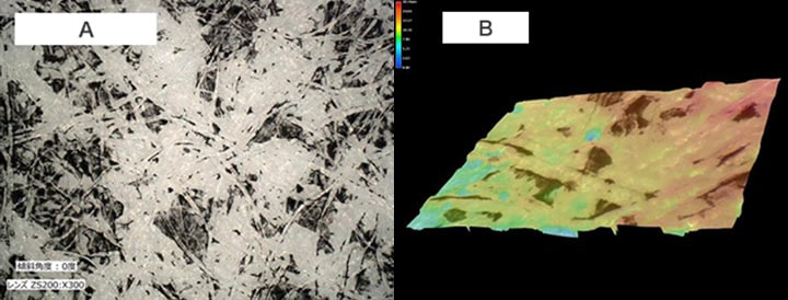 使用4K數位顯微鏡「VHX系列」,可輕鬆取得4K高精細影像,能快速且清晰觀察用紙表面細微形狀與纖維狀態。