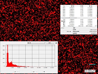 自動面積量測時即使是表面有凹凸的目標物,只要從影像指定量測範圍,即可自動且高精度地進行碳粉的粒子分析。量測3D形狀時,只要數秒即可以3D尺寸和彩色高度資料顯示3D形狀,達到流暢的分析與比對。