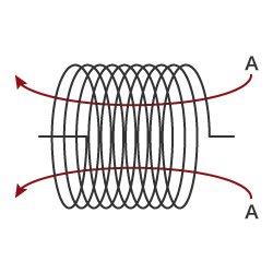 - 於電源電路使用的線圈稱為扼流線圈。進行電源的平滑化及去除干擾。