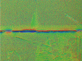在此光影模式影像上重疊色彩資訊,可同時呈現凹凸資訊與色彩資訊,再經由分色(色圖)顯示,更輕易了解並可視化凹凸資訊。