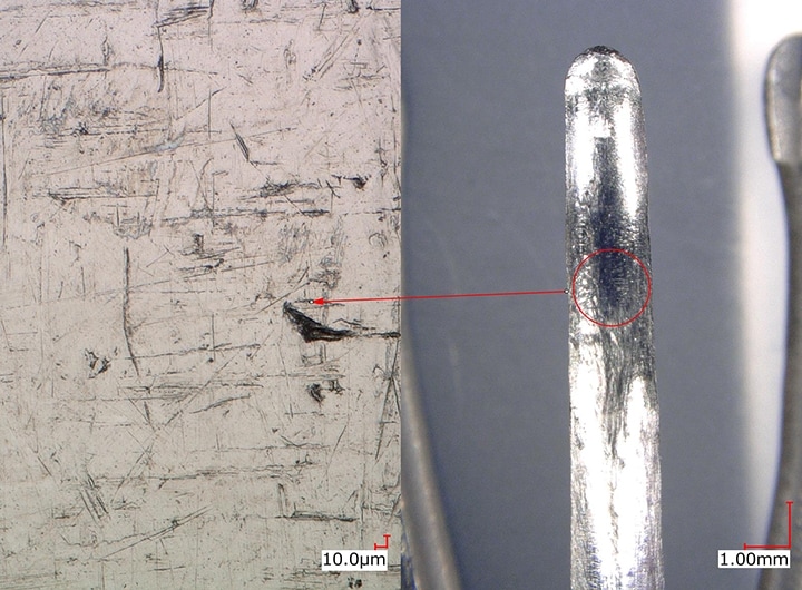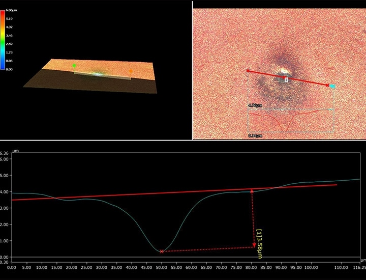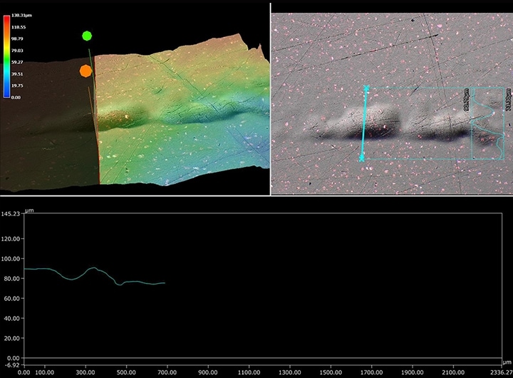 可定量評估是異物還是凹痕、或是細孔還是微孔。僅用1台「VHX系列」,即可有效率的完成從放大觀察到2D、3D量測。