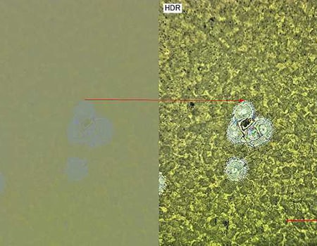 4K數位顯微鏡「VHX系列」比起以往的光學顯微鏡,實現了約20倍以上的景深。還配備可由不同快門速度的多張影像,取得高灰階、高對比影像的「HDR功能」。即使是對比極低、高反射率的目標物,也能透過簡單操作快速分析細微缺陷。