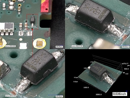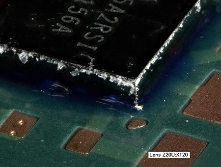 4K數位顯微鏡「VHX系列」連細微的異物也能用高倍率且清晰的影像捕捉。此外可用少張影像即可建構立體影像,辨別存在電路表面的異物。