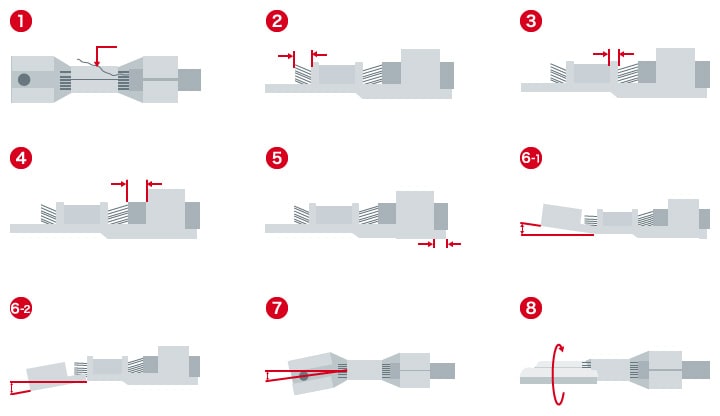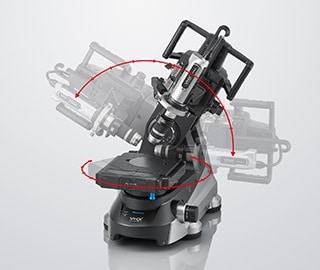 可簡單對準3軸(視野、旋轉軸、傾斜軸)的調整機構,可由自由的角度觀察。此外無論是傾斜或旋轉,視野也不會偏離,展現自動中心性(Eucentric),因此大幅提升立體物的外觀觀察效率。