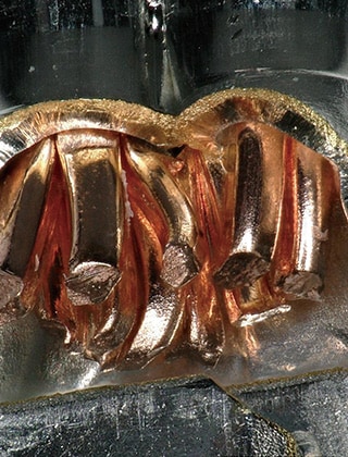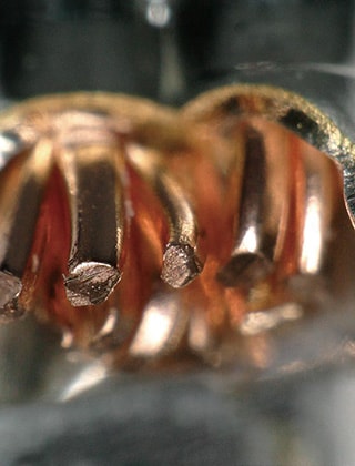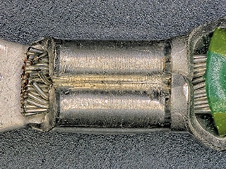 4K數位顯微鏡「VHX系列」透過「消除光暈」、「去除環狀」功能,去除金屬面光澤的反射,可正確觀察、掌握芯線的填嵌狀態。