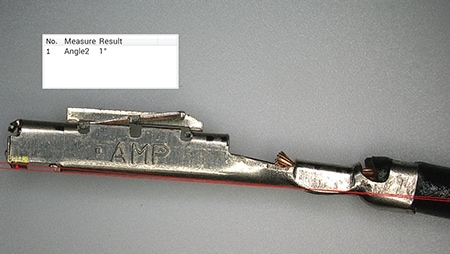 以下圖為例,自動只量測芯線填嵌截面的芯線部分面積。對於僅靠壓接高度量測與截面觀察無法掌握的填嵌部位芯線狀態,都能快速定量檢查。
