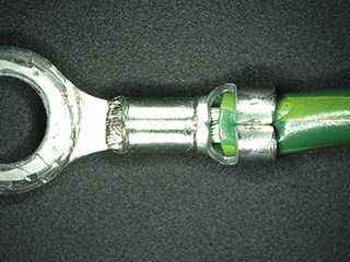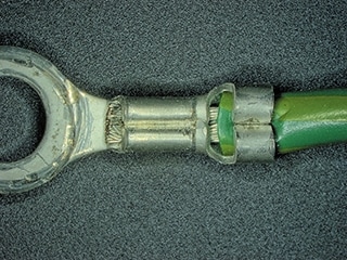 壓接過多 - 壓接高度超出規定時會導致「壓接不足」,電線在承受拉力時脫落。低於規定時,會因為「壓接過多」,壓接管咬入芯線而造成損傷。