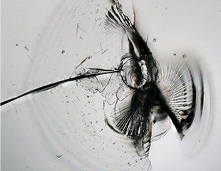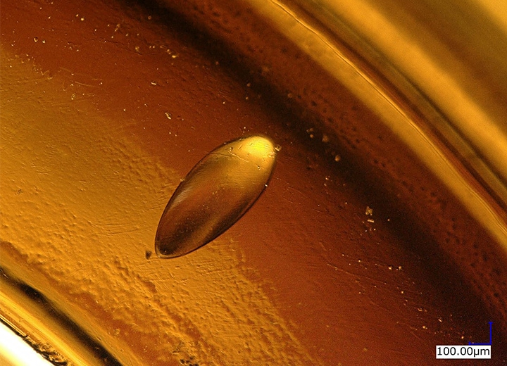 安瓿和小玻璃瓶等必須具備高密封性的玻璃容器一旦有裂痕、破裂、氣泡等不良或缺陷,就會影響產品耐久性和安全性、可靠性。然而這種不良會相對於玻璃厚度立體地發生,以往的顯微鏡高倍率觀察只能部分對焦,難以清晰觀察整體。