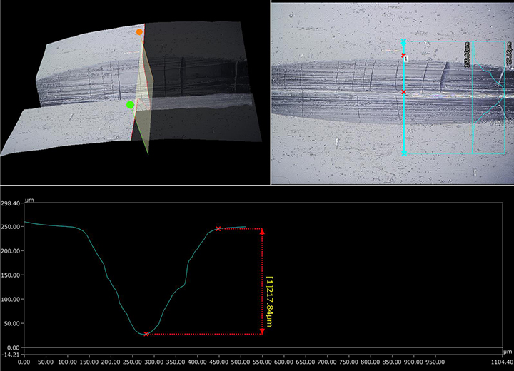 還能完成以往顯微鏡和測量儀的難題,如表面狀態的3D影像觀察、微小加工部位的非破壞、非接觸式2D、3D尺寸量測、截面形狀可視化,與輪廓量測,也都能無縫執行。