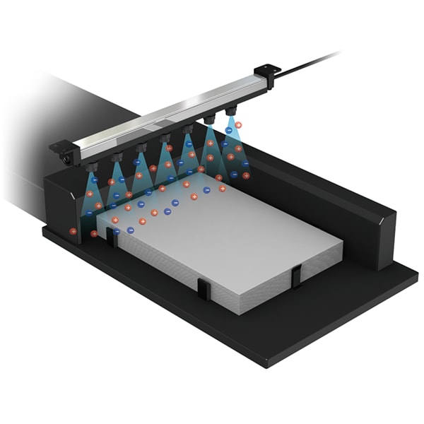膠印機會產生大量靜電。可能會有「送入兩張紙」、「紙張附著於送紙板」、「油墨噴濺」、「附著於印刷滾筒」、「噴粉不均勻」、「排紙部卡紙、參差不齊」、「進入下一個製程時出現異常」等各式各樣的問題產生。使用靜電消除器即可防止這些問題發生。