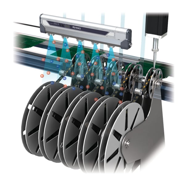 在傳送帶輸送過程中,PCB接觸輸送帶發生摩擦並積累靜電,電路板積累的大量靜電會吸附異物,發生靜電擊穿,造成不良品產生。靜電消除器可以消除靜電,從而減少不良品產生。