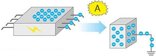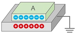 在此狀態下若導線接地,會對內部電場帶來激烈變化,使放電電流流入造成靜電破壞。