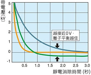 換言之,消除靜電後離子平衡越接近0 V的產品,代表其靜電消除精度,也就是性能越高。