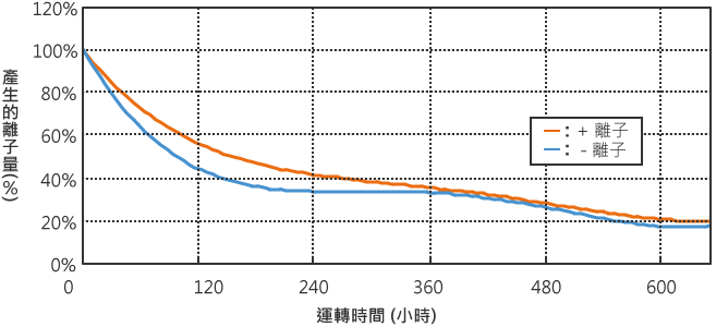 如此一來會造成不同極性的磨損速度不同,如脈衝DC方式或SSDC方式等電極針的極性有固定正、負極的方式,其正極電極針的磨損會比負極電極針的磨損快。因此持續使用一段時間後,離子平衡會有偏往負極側的傾向。