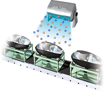 針對異物飄散的空間,使用棒型靜電消除器就能對整個室內進行大範圍的靜電消除。由於是對異物本身消除靜電,因此可防止異物因靜電而附著。