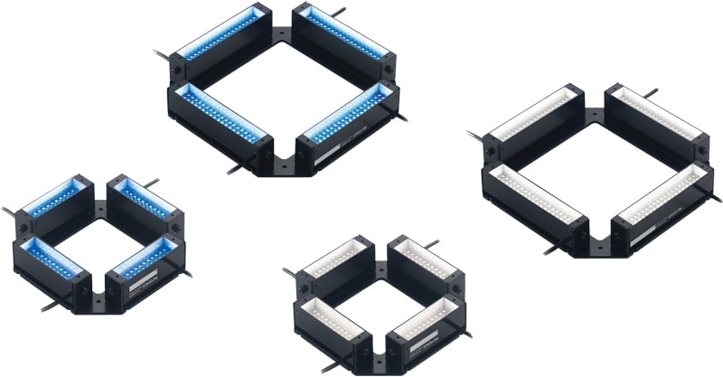 可個別調整四個方向照射角度的方型棒型照明。大範圍的均勻照射、以特定方向照射擷取特徵等,可配合目標物形狀打造出最佳的檢查條件。