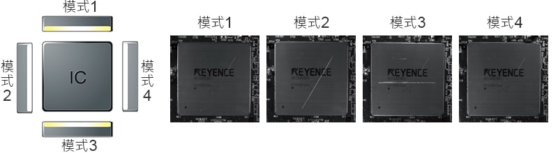 切換發光模式,即可辨識出只有在特定方向的照明照射下,才會出現的瑕疵。