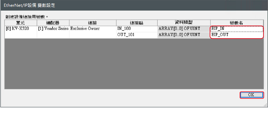 對於 CPU 功能版本為 2.0 或更高版本的 KV 系列,可以將變數分配給 EtherNet/IP 的連接。