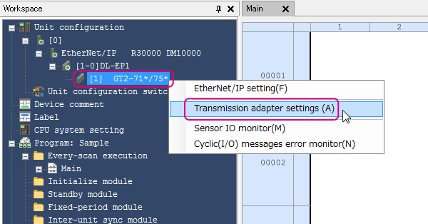 * 從選單選擇【Tool(T)】→【EtherNet/IP setting(W)】
